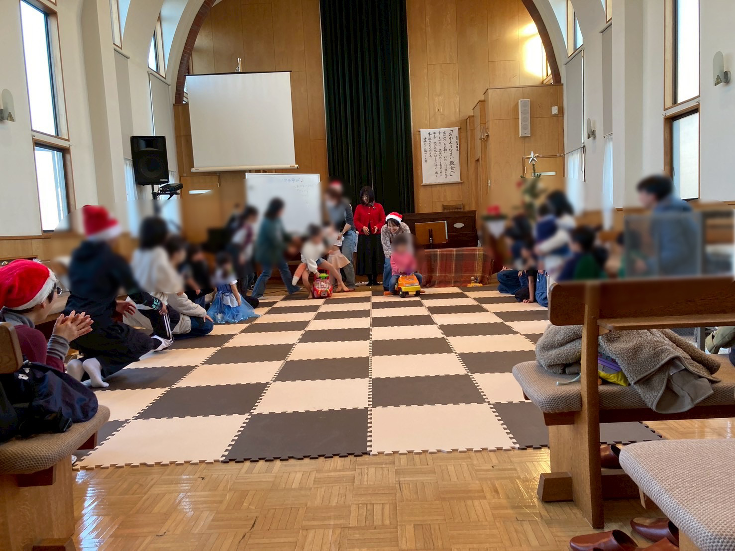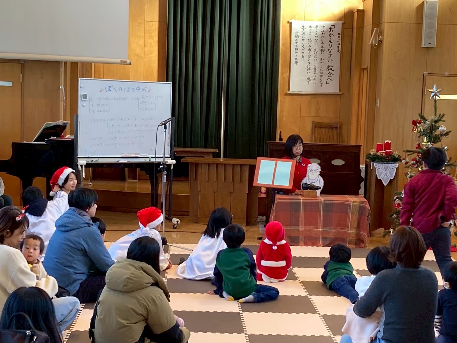 今年は共同保育の子どもやママ、パパも参加してくださいました! 小さなお友だちの「こひつじさん」たちはとってもかわいかったです |