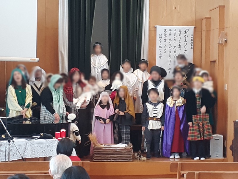 | 恒例の降誕劇(クリスマス礼拝にて) 毎年、礼拝に集うみんなで劇を作り上げていきます。
