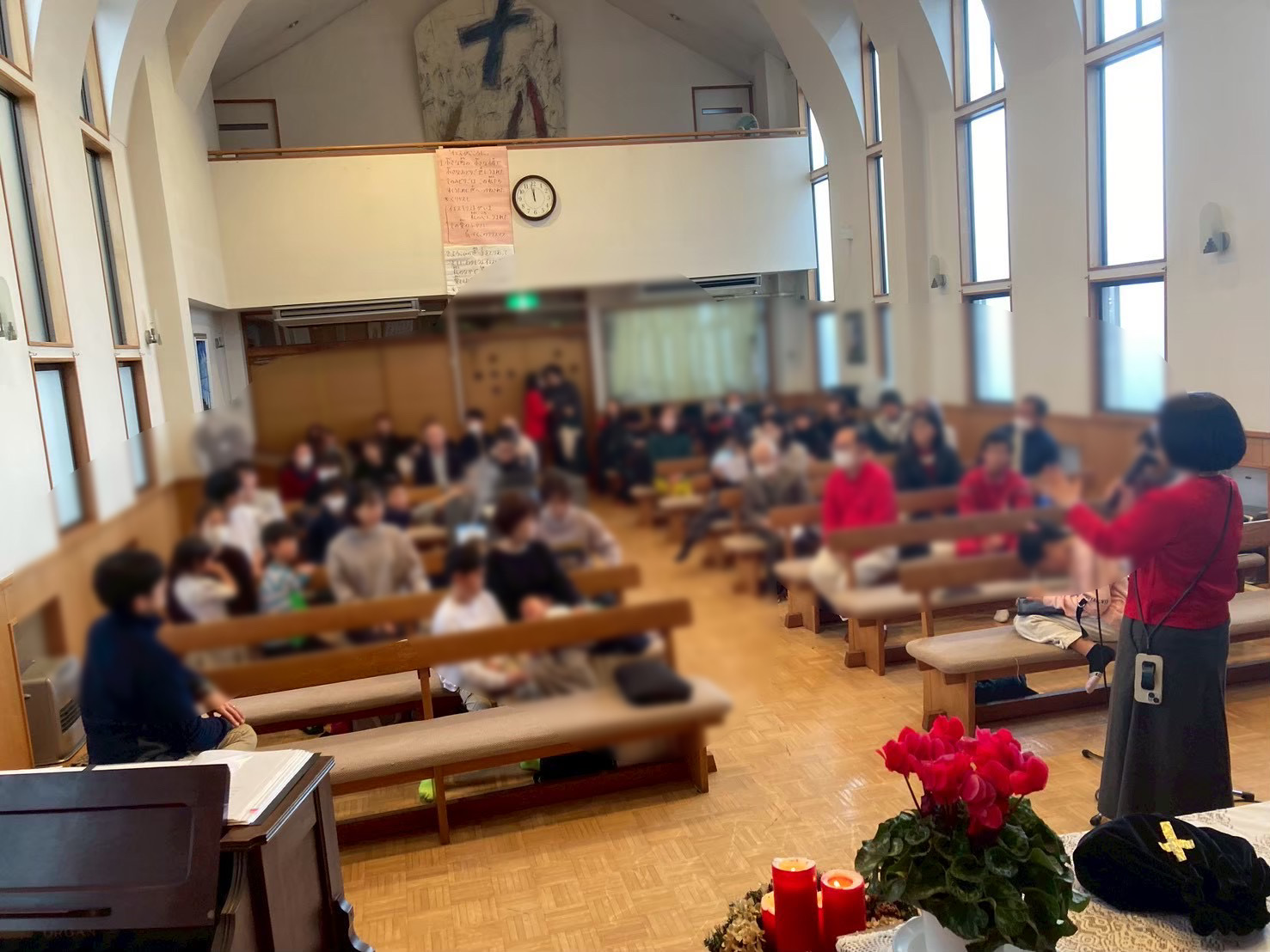 | 礼拝の様子 今年も地域の方がたくさん来てくださいました。 |